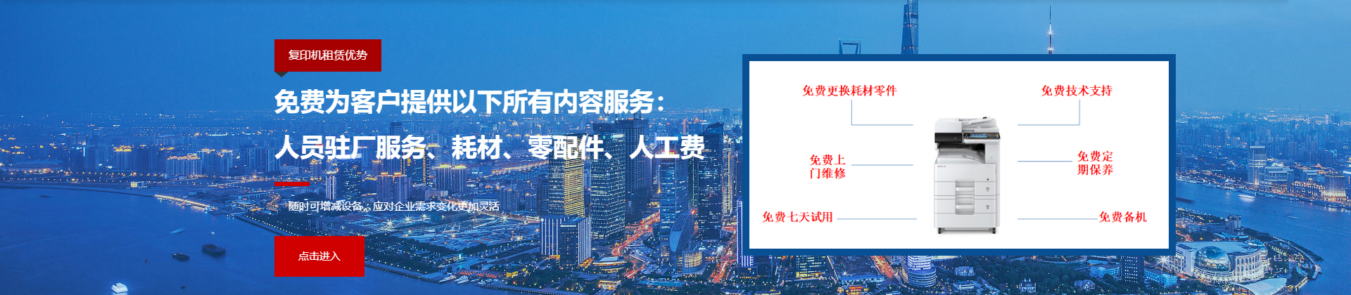 復印機/打印機/掃描儀/傳真機/投影儀/電腦等設備的租賃,銷售,全包維修,耗材置換服務